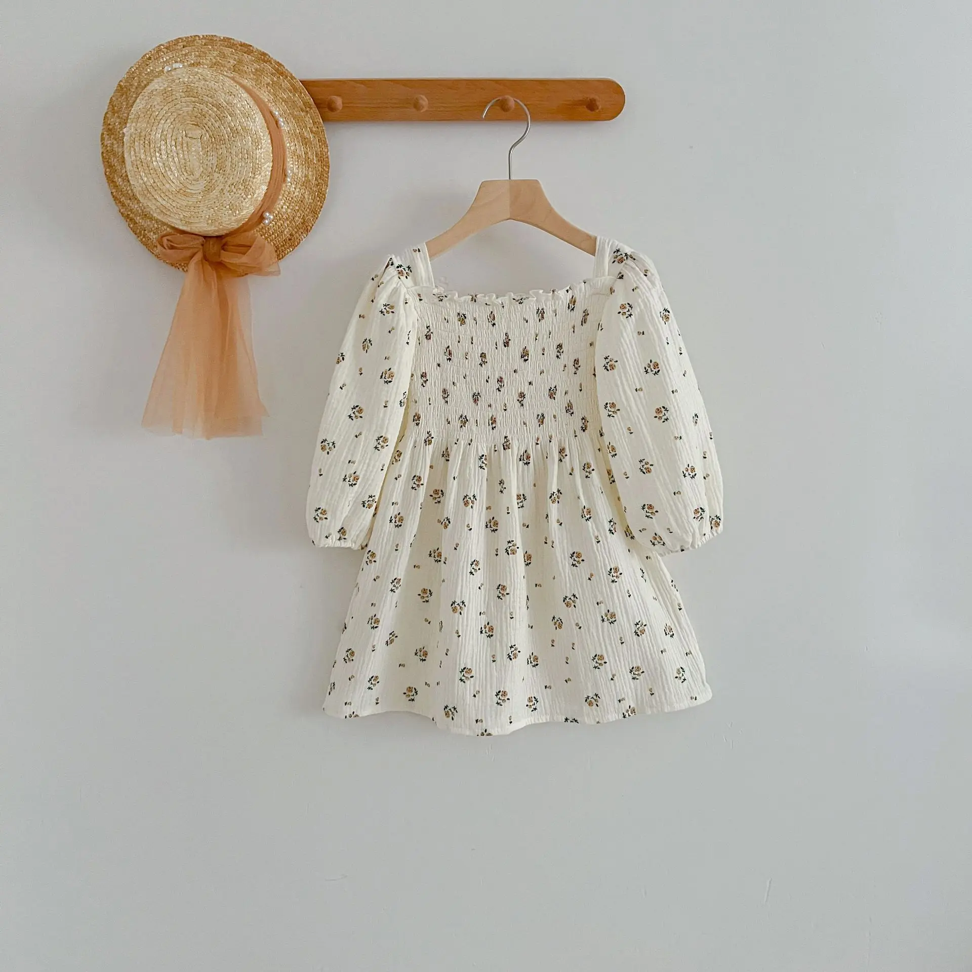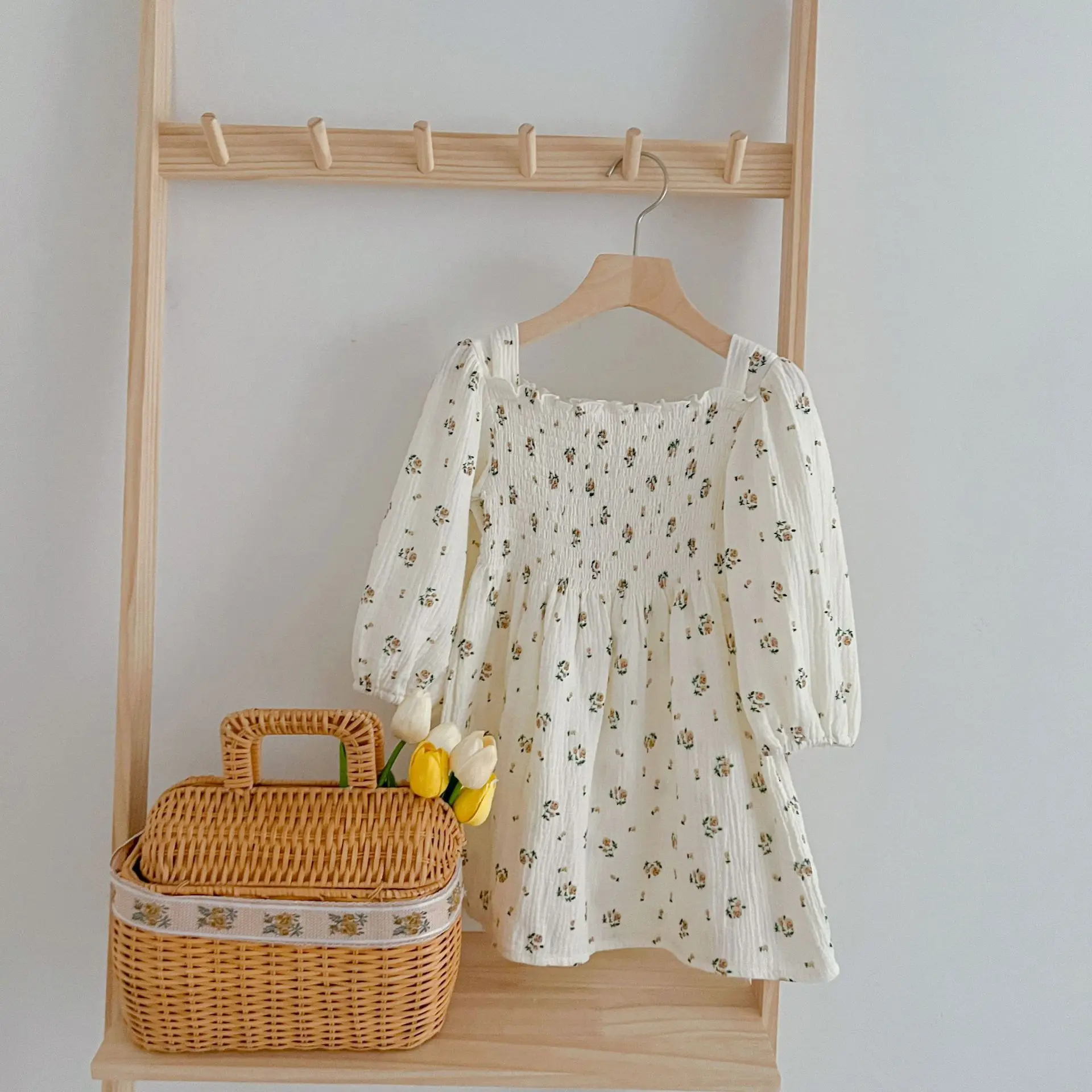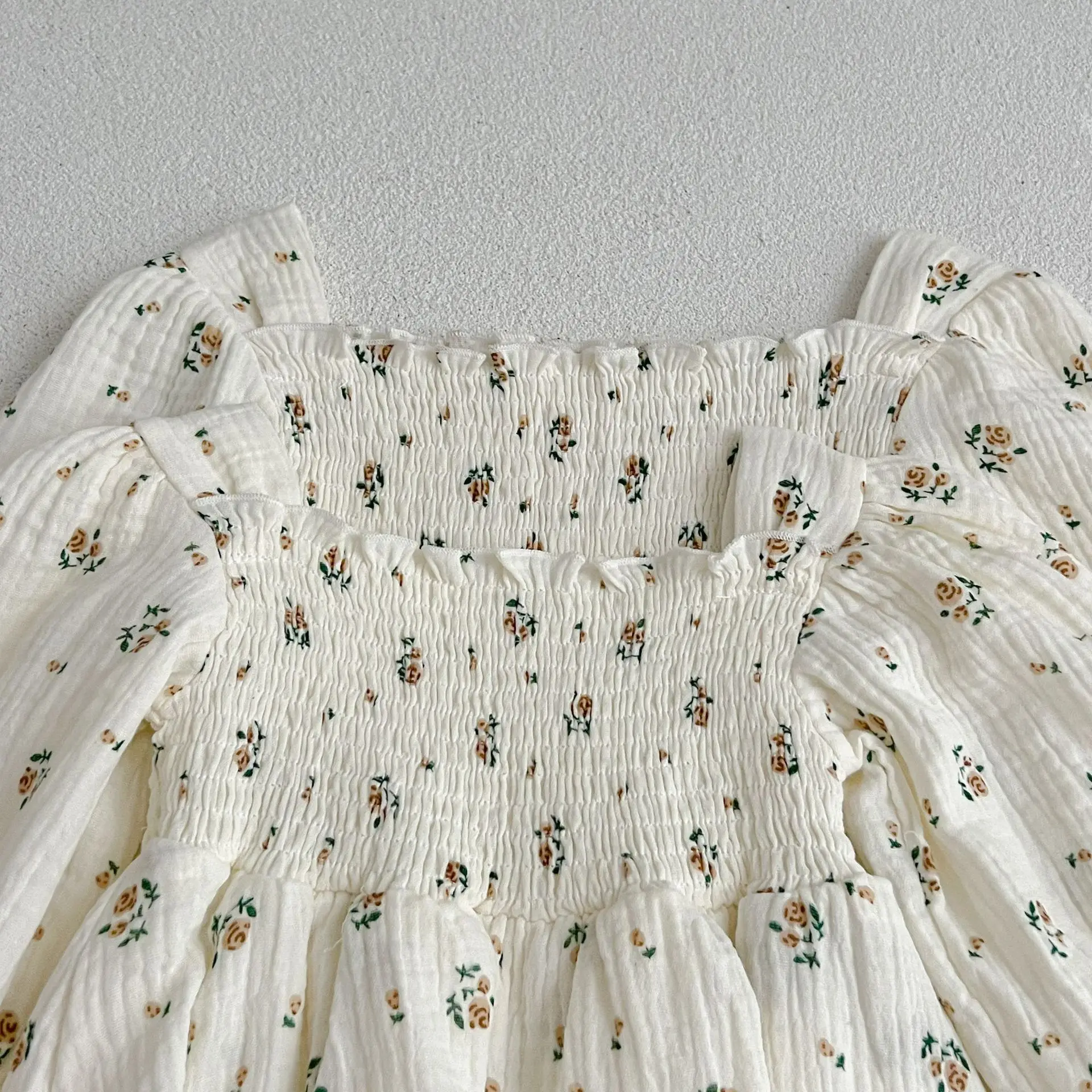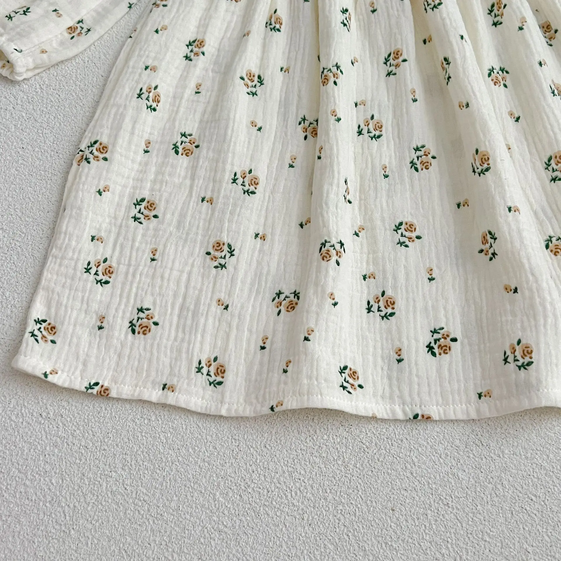 Spring Autumn Kids Baby Girls Long Sleeve Sweet Rose Printing Princess Dress Casual Baby Girls Dress Children Clothes Dress
